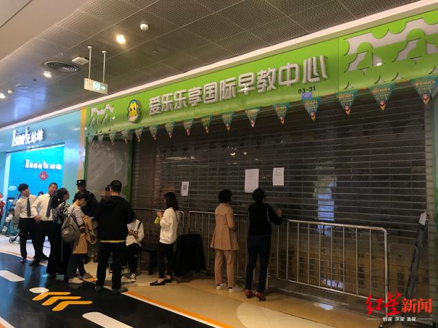 ↑位于凯德天府广场三楼的爱乐乐享国际早教中心一夜关门,家长们不知所措。