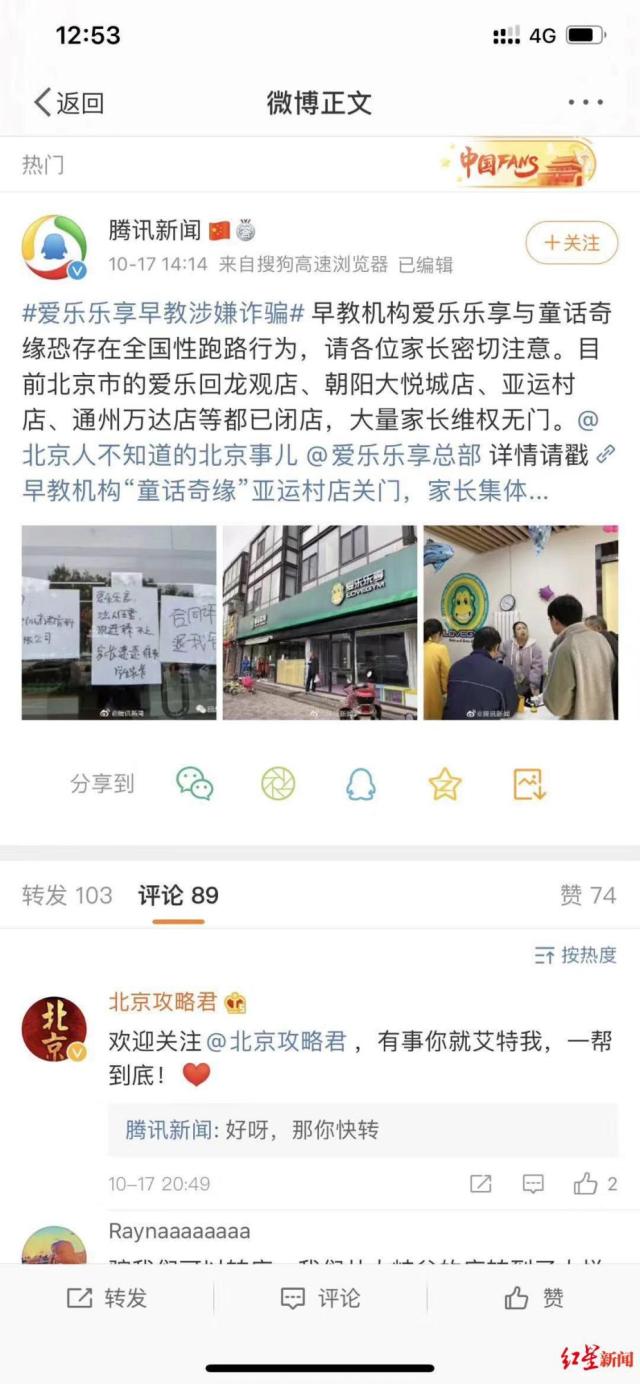 ↑该早教品牌在北京等地也曝出跑路新闻