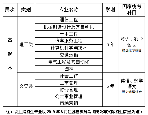我校根据农业等艰苦行业、社会企事业单位的“推荐考核”和“校企合作”专业招生计划,与企业共同确定推荐考生名单,上报江苏省考试院审核,由我校自主命题、自主组织考试,江苏省统一录取。